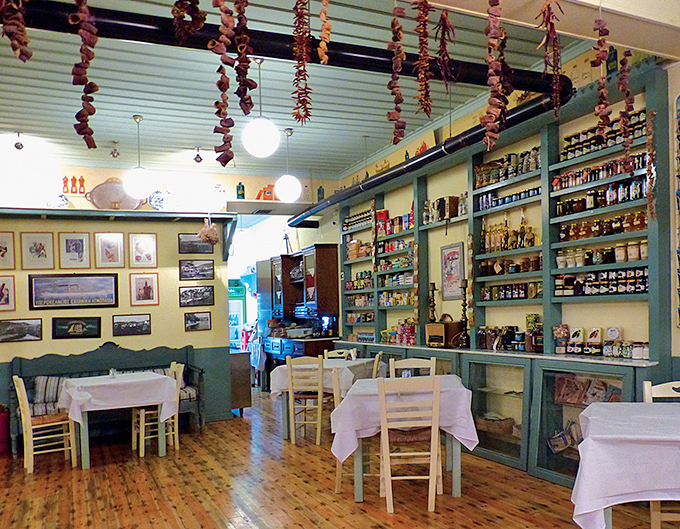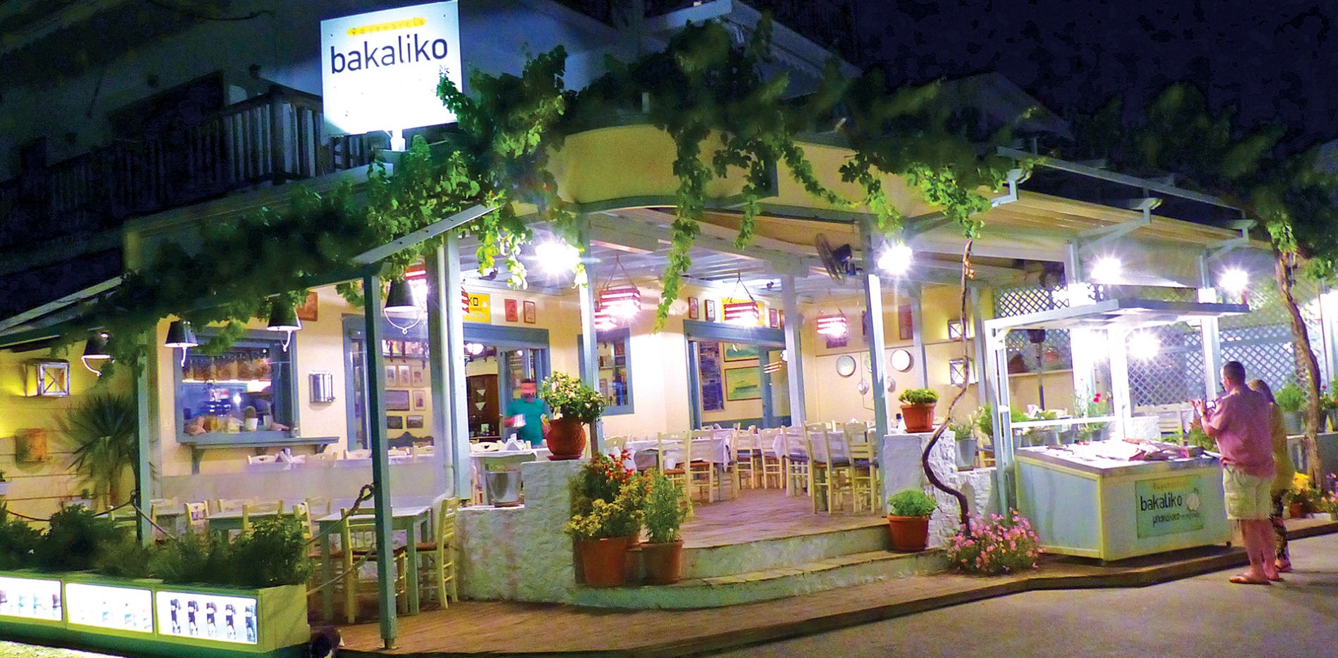 The picturesque restaurant - tavern of Dimos Kavouris, at the east side of the new harbor, will definitely attract your attention. Fresh fish, lobsters, appetizers for tsipouro, and many cooked dishes, such as meatballs from Smyrna, create a big gastronomic variety. Ask for seafood spaghetti and fried feta cheese (saganaki) with honey, as well as for the "plakopites" of Skiathos (fried bread), a menu much in request. "BAKALIKO", all together as a group!