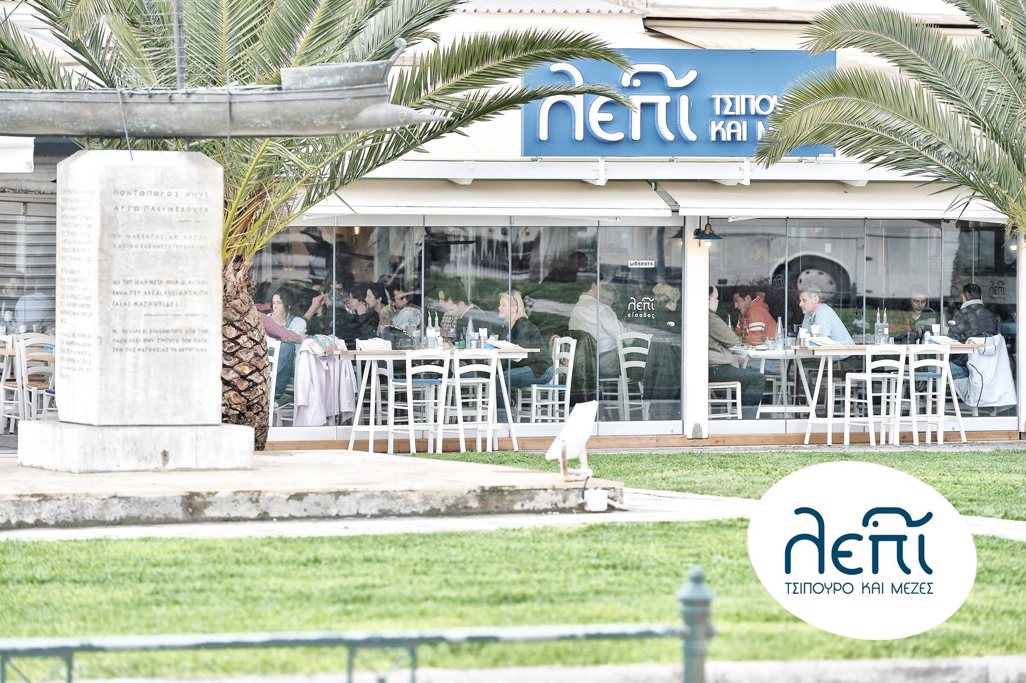 Το "Λέπι" είναι ένα μοντέρνο τσιπουράδικο με πολύ ωραία διακόσμηση και ακόμη καλύτερο περιβάλλον, αφού βρίσκεται σε στρατηγική θέση απέναντι από το λιμάνι. Οι μεζέδες του είναι ποιοτικοί, γρήγορο και φιλικό το σέρβις. Τα τραγανά φιλετάκια γαύρου, το καπνιστό σκουμπρί, και η φάβα με καραμελωμένα κρεμμύδια και κόκκινο πιπέρι σερβίρονται στα πρώτα τσίπουρα και θα σας ανοίξουν την όρεξη για έναν ακόμη «γύρο». Είναι λιγότερο αυστηροί ως προς την ψαροφαγία, αφού σερβίρουν και τυριά, όπως μανούρι ψητό με πελτέ, αλλά και κάποιους κρεατομεζέδες, όπως σπετζοφάι και αυγά τηγανητά με καβουρμά.