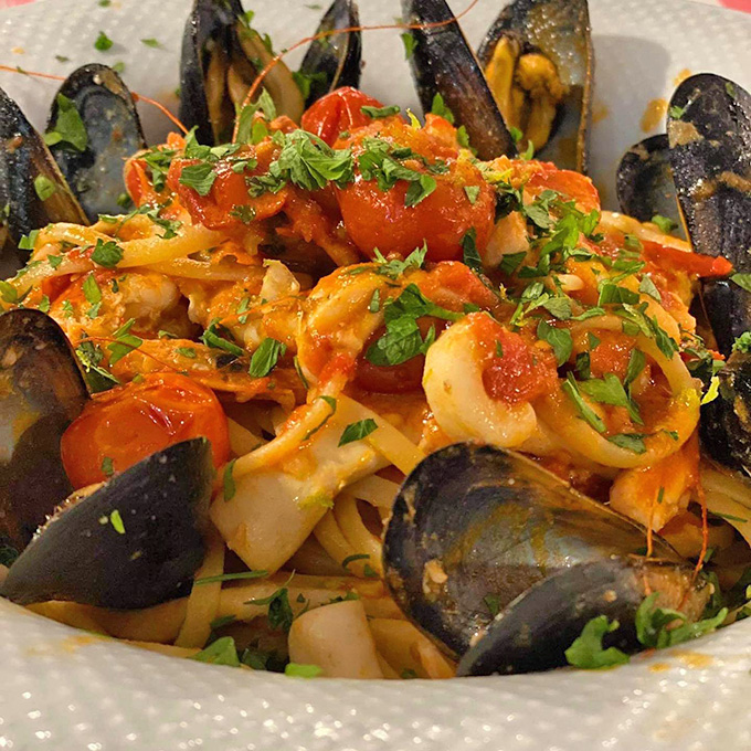 Beautiful shop with the perfect backdrop of Koukounaria beach. It is known for its excellent service and friendly staff, who are always ready to help you. We tried garlic bread, pizza ottimo special and caccio pepe with veal fillets and dessert which was amazing. Big portions and very nice Italian flavors at reasonable prices. At the end of the bill they offered us mastic. We would definitely go again!
