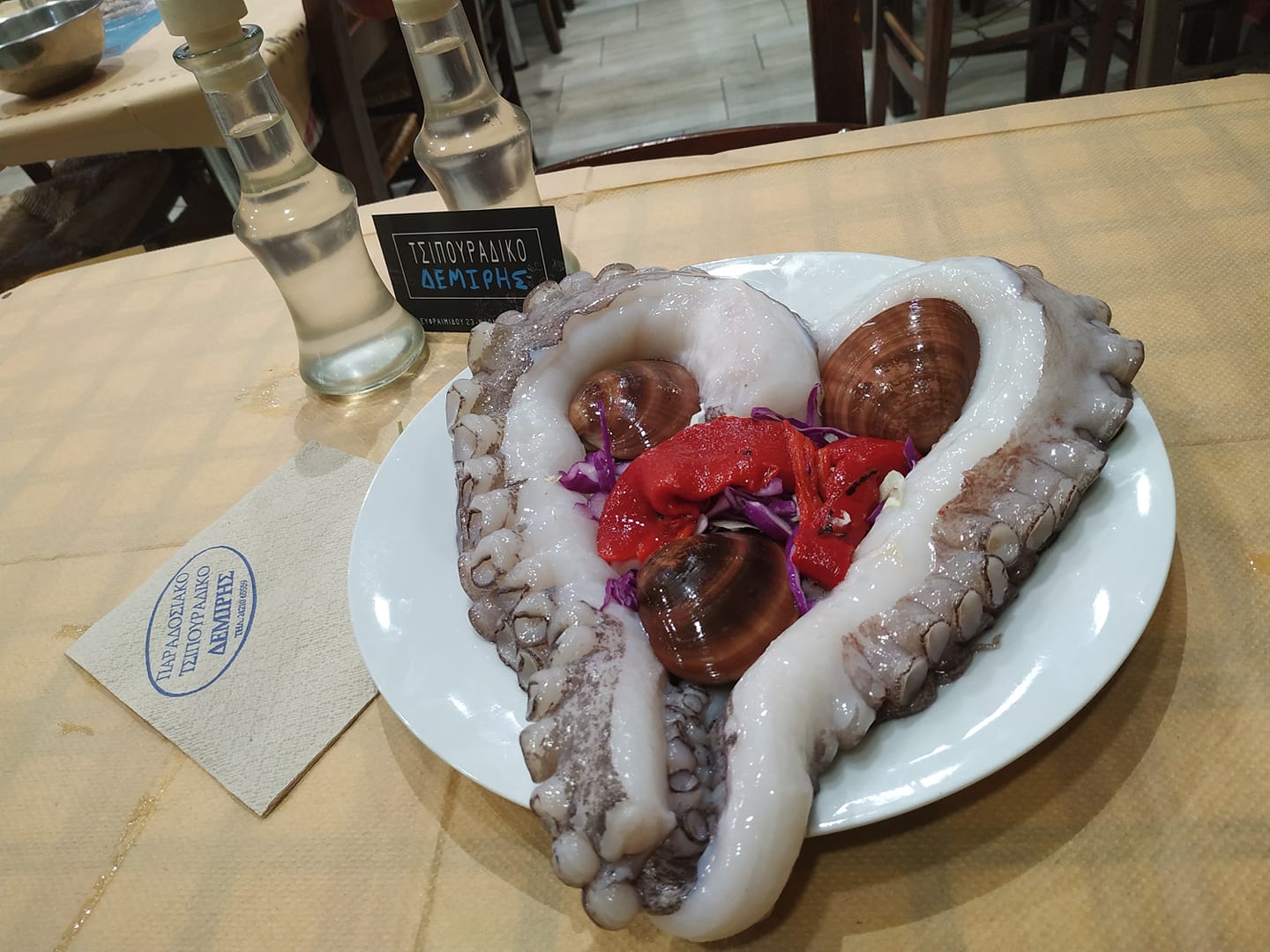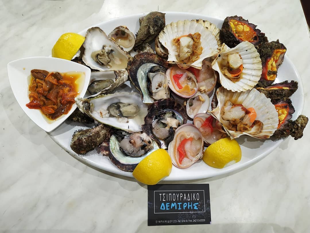 Σαράντα και πλέον χρόνια βρίσκεται στην ίδια θέση και σήμερα έχει περάσει στην τρίτη και τέταρτη γενιά. Ο χώρος θυμίζει περισσότερο καφενείο παρά τσιπουράδικο ή ταβέρνα. Οι τοίχοι είναι γεμάτοι με φωτογραφίες του ιδιοκτήτη κ. Δεμίρη, από την καριέρα του ως μουσικού στο πλάι γνωστών λαϊκών τραγουδιστών. Έντονα στη διακόσμηση και το ναυτικό στοιχείο, αλλά και το ποδοσφαιρικό, μεταξύ των οποίων της τοπικής Νίκης Βόλου. Εδώ ερχόμαστε για τη μεγάλη ποικιλία οστρακοειδών, γυαλιστερές, κολιτσιάνοι, μύδια, φρέσκο τηγανητό ψαράκι ημέρας, σαγανάκια, χταπόδι βραστό, κολιτσιάνοι, καλαμαράκια τηγανητά είναι μερικά μόνο από τα μεζεδάκια που απολαμβάνουμε. Το καλοκαίρι βγάζει και τραπεζάκια έξω, στο πεζοδρόμιο και λίγο παρεκεί, στο πάρκο.