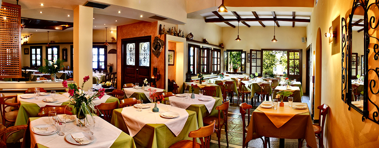 Είναι πανέμορφο, με έργα τέχνης να δεσπόζουν στο χώρο και υπέροχο κήπο. Λειτουργεί όλο το χρόνο και έχει πάρει πιστοποίηση ελληνικής κουζίνας. Εκεί θα απολαύσετε καλομαγειρεμένες ελληνικές συνταγές με μικρασιάτικες πινελιές που ευωδιάζουν αρώματα φρέσκων μυρωδικών. Πλούσια είναι και η κάβα επιλεγμένων εμφιαλωμένων κρασιών που διαθέτουμε από Έλληνες παραγωγούς.