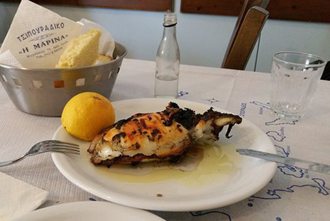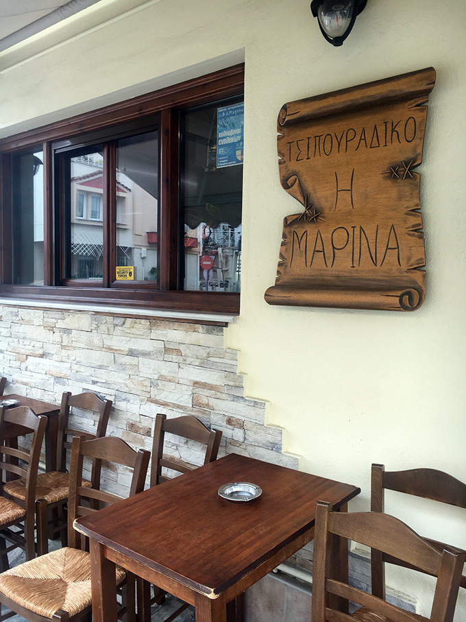 Η κυρία Μαρίνα λειτουργούσε το τσιπουράδικό της στην ίδια θέση περισσότερο από μισό αιώνα, έχοντας τον περισσότερο χρόνο δίπλα της τον γιο της. Σήμερα, ο Αποστόλης Ιατρίδης που έχει πλέον το κουμάντο στο μαγαζί σερβίρει ό,τι πιο φρέσκο από ψαρικά, κυδώνια, καλαμάρια, σουπιές, όστρακα καθώς τα εικοσπενταράκια κάνουν... πυραμίδες στα τραπέζια!