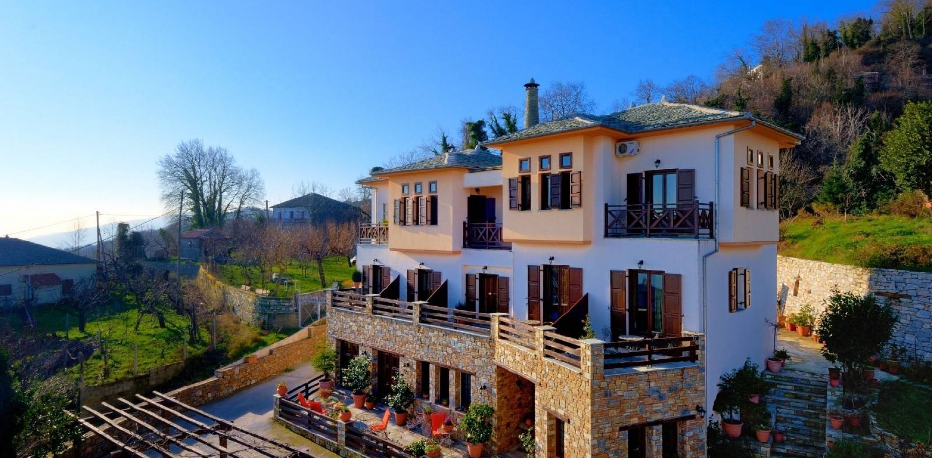 Πολυτελείς ξενώνες και σουίτες, μέσα στις ομορφιές της πηλιορείτικης φύσης. Στα 14 άρτια, πολυτελή δωμάτια του, με την αρχοντική φινέτσα σε γήϊνα και παστέλ χρώματα και την υψηλής αισθητικής διακόσμηση -διαφορετικού στιλ σε κάθε δωμάτιο-, θα βρείτε όλες τις σύγχρονες ανέσεις, ενώ τα μπροστικά μπαλκόνια προσφέρουν συγκλονιστική θέα στο Αιγαίο. Διαθέτει επίσης δύο υπερσύγχρονες σουίτες, με σάουνα και όλα τα κομφόρ. Βρίσκεται δίπλα στον κεντρικό δρόμο που πηγαίνει στον Μυλοπόταμο.
