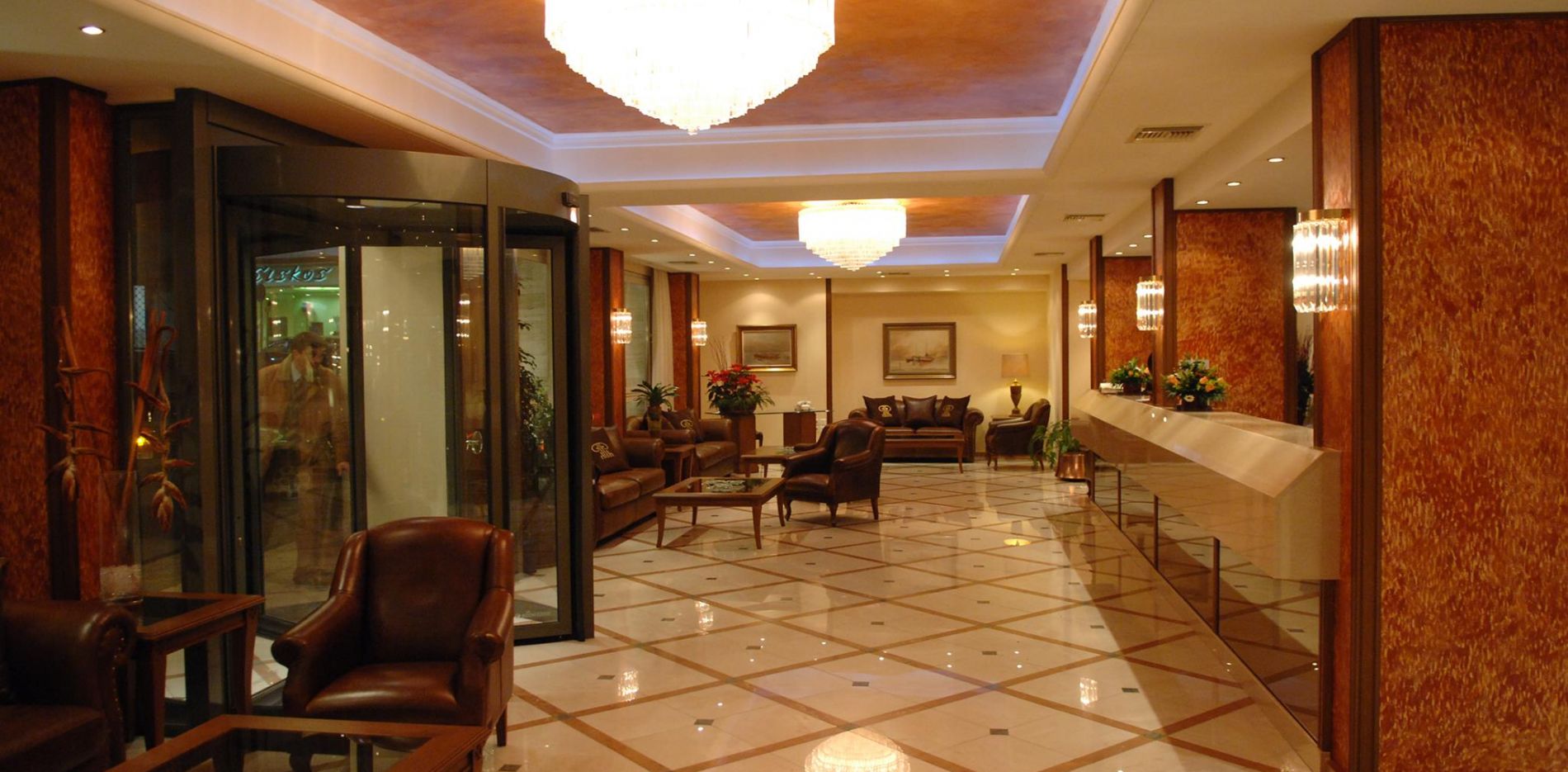 Η Υποδοχή είναι ένας πολυτελής, λειτουργικός και άνετος χώρος, που λειτουργεί όλο το 24ωρο. Το ξενοδοχείο διαθέτει 112 άνετα και διακοσμημένα με υψηλή αισθητική δωμάτια. Στις έξι σουίτες, μοναδικής διακόσμησης, με υδρομασάζ, ο επισκέπτης μπορεί να απολαύσει πολυτελή διαμονή. Διαθέτουν Mini bar / κεντρική θέρμανση-ψύξη / Τηλέφωνο / WI-FI. Σε όλους τους χώρους του ξενοδοχείου, παρέχεται σύστημα πυρασφάλειας. Στο χώρο της υποδοχής, λειτουργεί, υπηρεσία συναλλάγματος. Επίσης για κάθε πελάτη διατίθενται, θυρίδες φύλαξης πολύτιμων αντικειμένων, άνευ χρέωσης.
