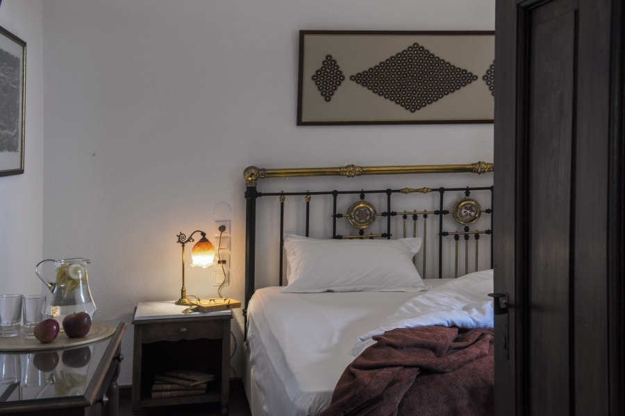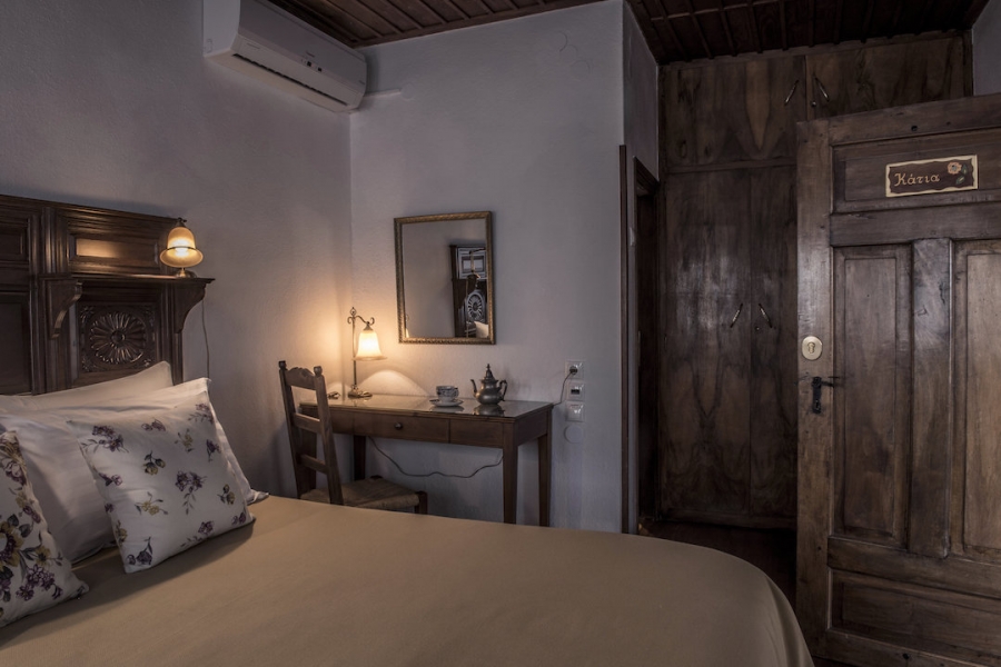 Όλα τα δωμάτια μας είναι ευρύχωρα, ευήλια και με ξύλινα πατώματα, διαθέτουν άπλετο χώρο για τις αποσκευές σας και τα ρούχα σας τα οποία μπορούν να τακτοποιηθούν στις πρόσφατα ανακαινισμένες μεγάλες παραδοσιακές ξύλινες ντουλάπες. Όλα τα δωμάτια διαθέτουν το δικό τους μπάνιο. Τα μπάνια ανακαινίστηκαν και αυτά, ευρύχωρα με ιδιαίτερο χαρακτηριστικό τους τα χειροποίητα διακοσμητικά πλακάκια. Το κάθε δωμάτιο και μπάνιο ξεχωριστά, έχει τον δικό του ιδιαίτερο χαρακτήρα. Τα κουφώματα, τα παντζούρια και τα παράθυρα είναι και αυτά χειροποίητα από ξύλο καστανιάς. Τα παράθυρα είναι με διπλά τζάμια, εξασφαλίζοντας μειωμένες απώλειες ενέργειας. Κοιτάζοντας έξω μπορείτε να απολαύσετε τη μοναδική θέα του βουνού, της θάλασσα; ή και τα δύο μαζί!