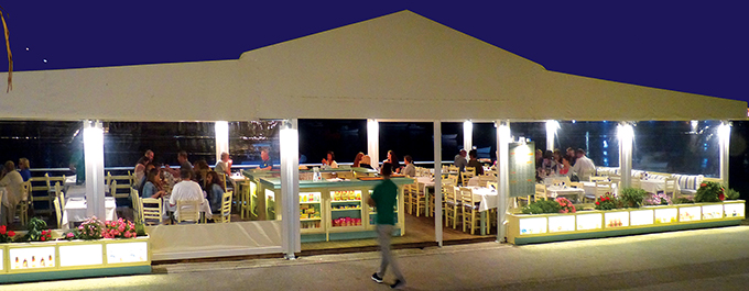 The picturesque restaurant - tavern of Dimos Kavouris, at the east side of the new harbor, will definitely attract your attention. Fresh fish, lobsters, appetizers for tsipouro, and many cooked dishes, such as meatballs from Smyrna, create a big gastronomic variety. Ask for seafood spaghetti and fried feta cheese (saganaki) with honey, as well as for the "plakopites" of Skiathos (fried bread), a menu much in request. "BAKALIKO", all together as a group!