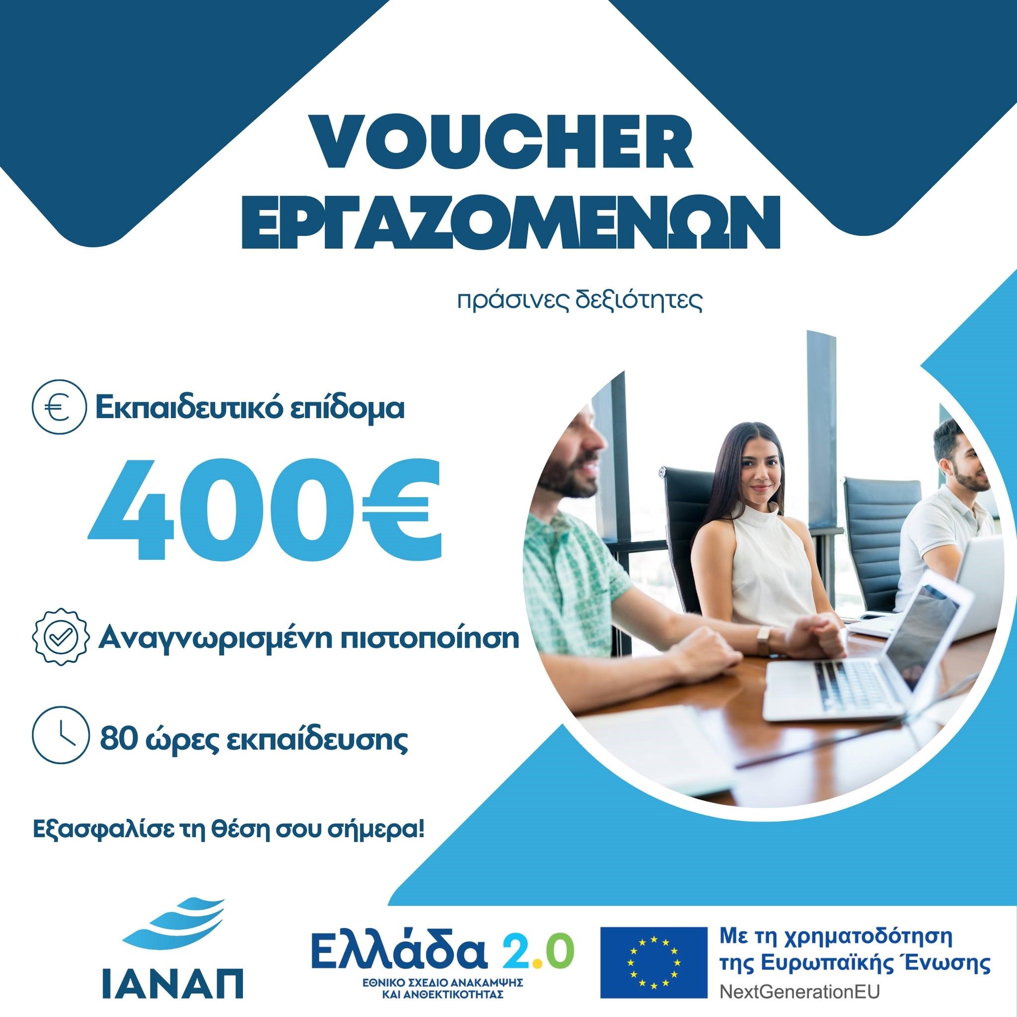 Αφορά ηλικίες 18 και άνω. Περιλαμβάνει θεωρητική κατάρτιση με έμφαση στις πράσινες δεξιότητες. Απόκτηση πιστοποίησης στο θεματικό αντικείμενο κατάρτισης. Εκπαιδευτικό επίδομα: 400€.