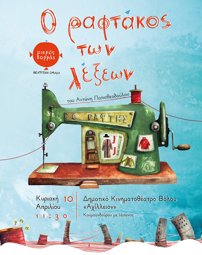 Ο "Ραφτάκος των λέξεων" από τον "Μικρό Βορρά", έρχεται στον Βόλο στις 10 ΑπριλίουΗ παιδική παράσταση βασισμένη στο ομώνυμο best seller του Αντώνη Παπαθεοδούλου, ταξιδεύει για πρώτη φορά στον Βόλο για μία εμφάνιση την Κυριακή 10 Απριλίου 2022 και ώρα 11.30 στο Αχίλλειον Δημοτικό Κινηματοθέατρο Βόλου.